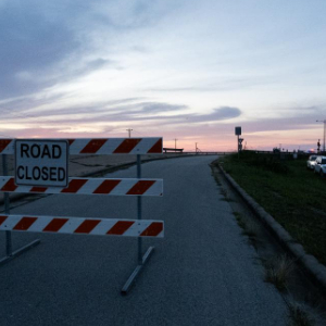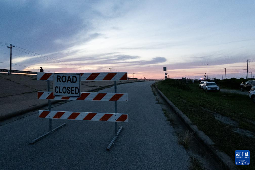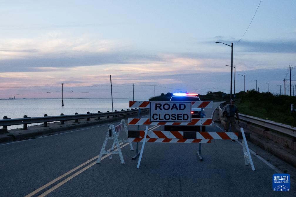 5月15日,在美国得克萨斯州加尔维斯顿市,遭驳船撞击的桥梁被关闭。新华社发(陈晨摄)
