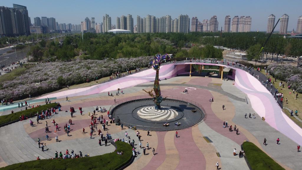 哈尔滨市丁香公园内,市民、游客在赏花拍照。新华社记者 吴悠 摄