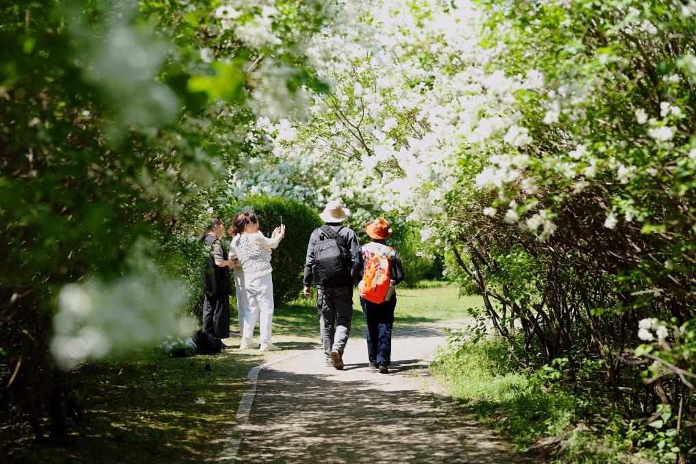紫丁香、欧丁香、白丁香……丁香公园内有30余种丁香品种。每当从花繁叶茂的树旁走过,总会有淡淡花香轻拂肩头,让人忍不住流连驻足,再深吸一口气,想要尽可能地留住这抹香。