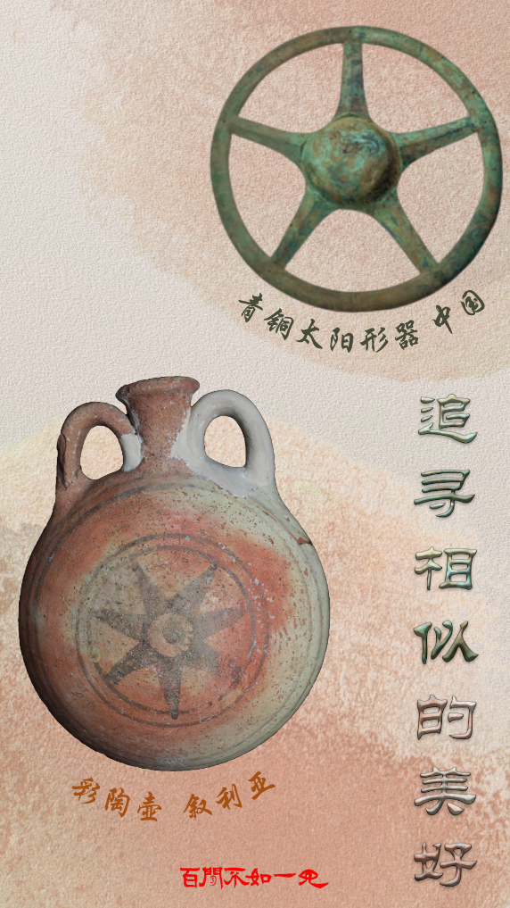 叙利亚彩陶壶,刻画着简洁直观的太阳纹