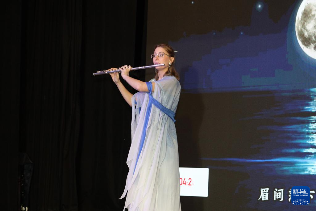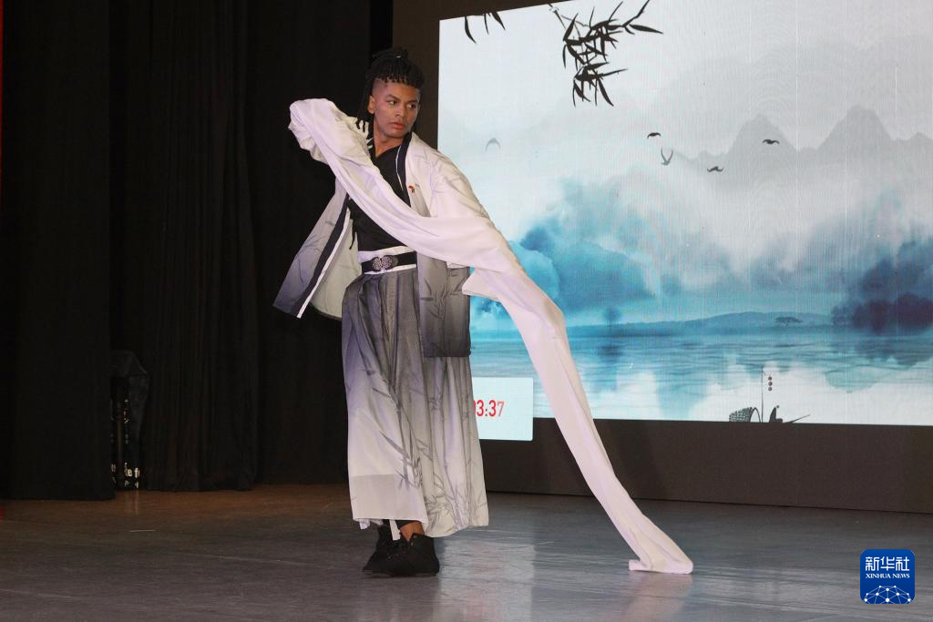 5月17日,参赛选手在南非开普敦举行的第23届“汉语桥”世界大学生中文比赛南非赛区决赛上进行才艺展示。新华社记者 王雷 摄