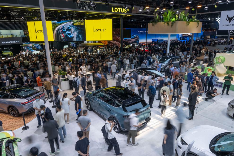4月25日,人们在2024(第十八届)北京国际汽车展览会现场参观。新华社记者才扬摄