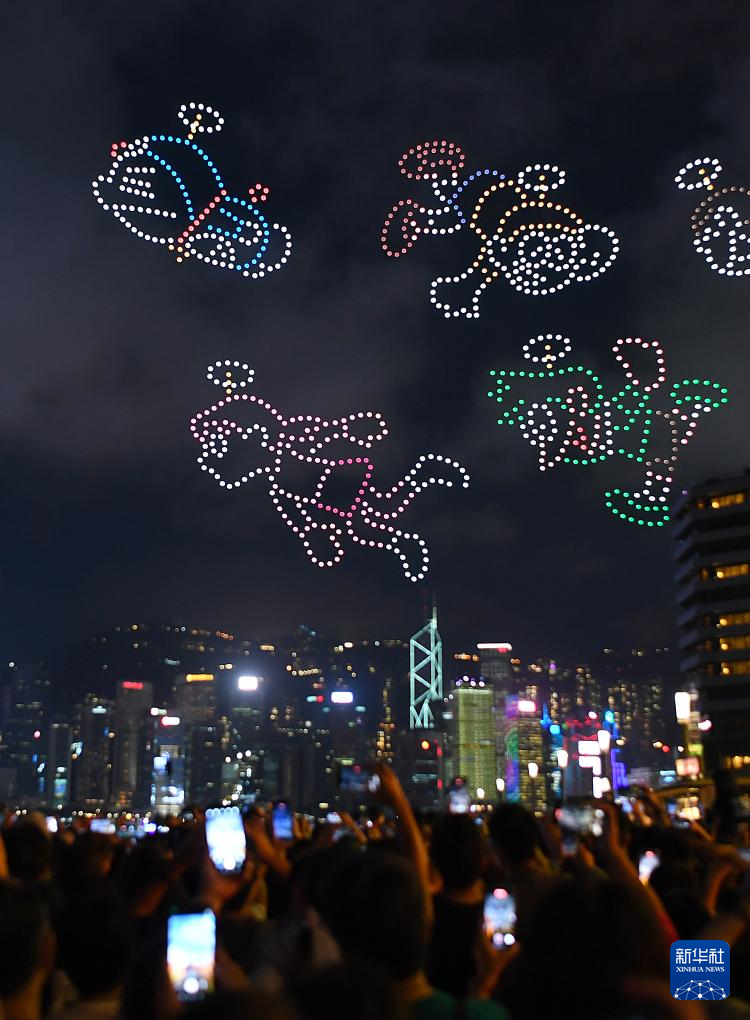 表演持续约10分钟,然后无人机群缓缓飞离维港夜空,海滨仍洋溢着欢乐气氛。