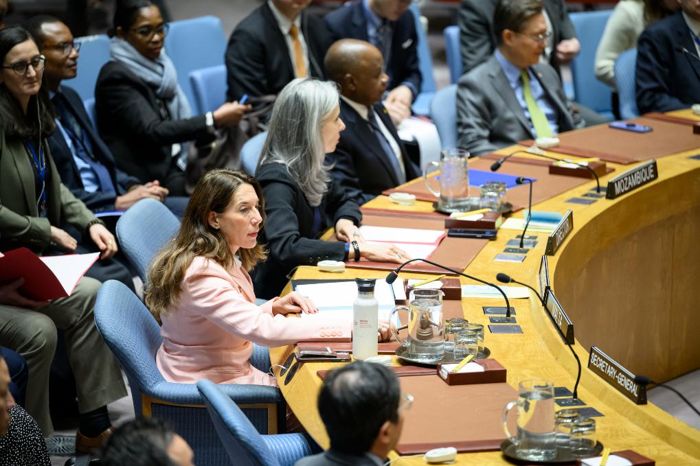 4月8日,在位于纽约的联合国总部,联合国安理会举行会议重新审议巴勒斯坦成为联合国正式会员国的申请。新华社发(联合国供图/洛伊·费利佩摄)
