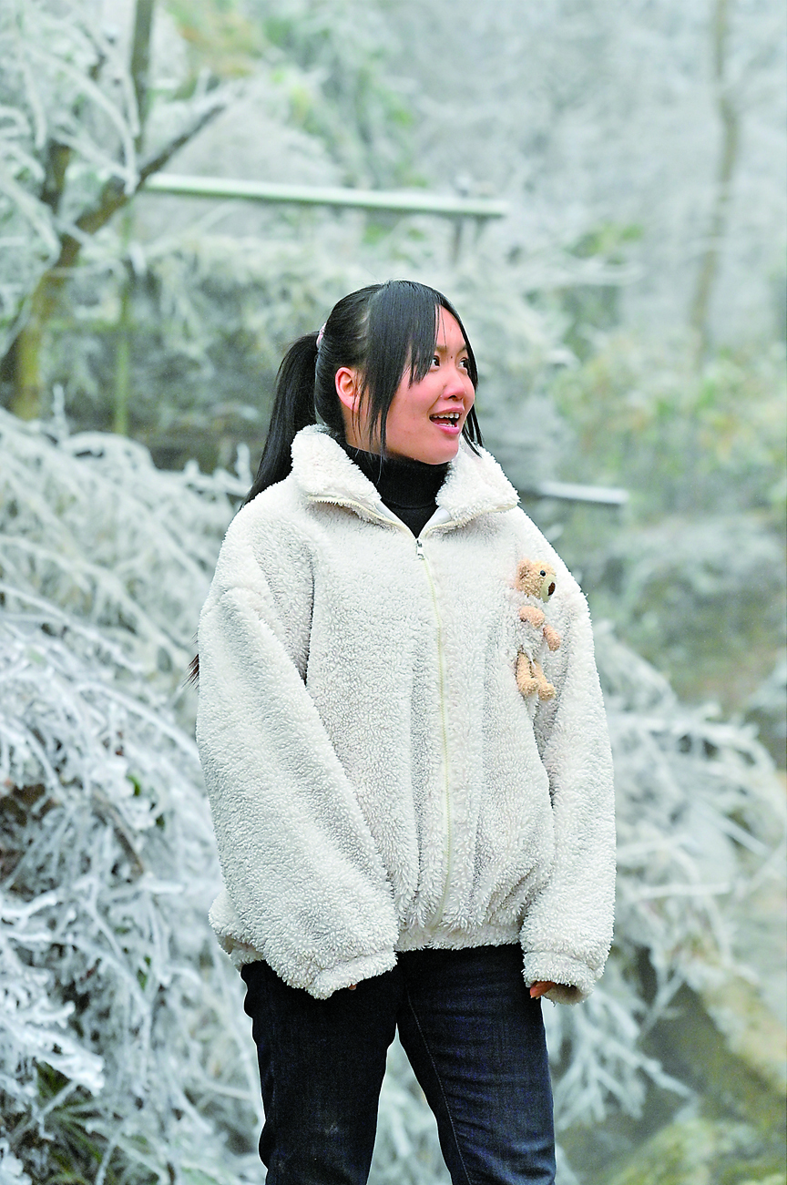 结冰的山路很滑,下坡时,凤艳萍试图抓住路边的杂草,但覆冰的杂草也很滑,一不小心,整个人就滑到坡底,还好人没受伤。