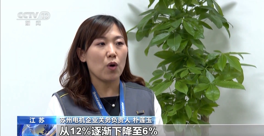 苏州电机企业关务负责人 朴莲玉:我们进口的电子产品的关税率从12%逐渐下降至6%。今年1-5月份,我公司进口的享惠货值超过3100万元,获得了190万元的关税优惠。