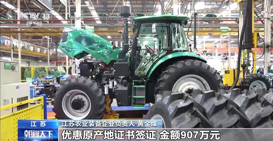 江苏农业装备企业负责人 黄金烽:今年前5个月,公司向常州海关申领自贸协定优惠原产地证书签证金额907万元,同比增长73%。