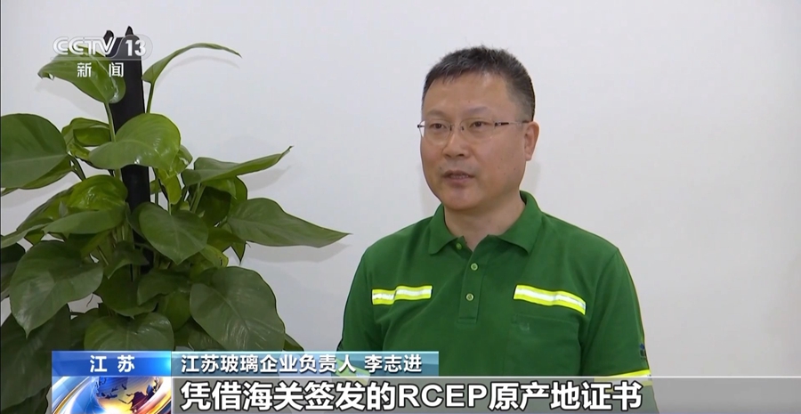 江苏玻璃企业负责人 李志进:凭借海关签发的RCEP原产地证书,这批货物抵达国外后,其进口关税将由6.3%直接降为0。今年1—5月我们总共申领了21份RCEP原产地证书,预计可在目的国享受到关税优惠超过60万元。