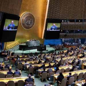 这是6月6日在位于纽约的联合国总部拍摄的联合国大会安理会非常任理事国选举现场。新华社发(联合国供图/曼努埃尔·埃利亚斯摄)