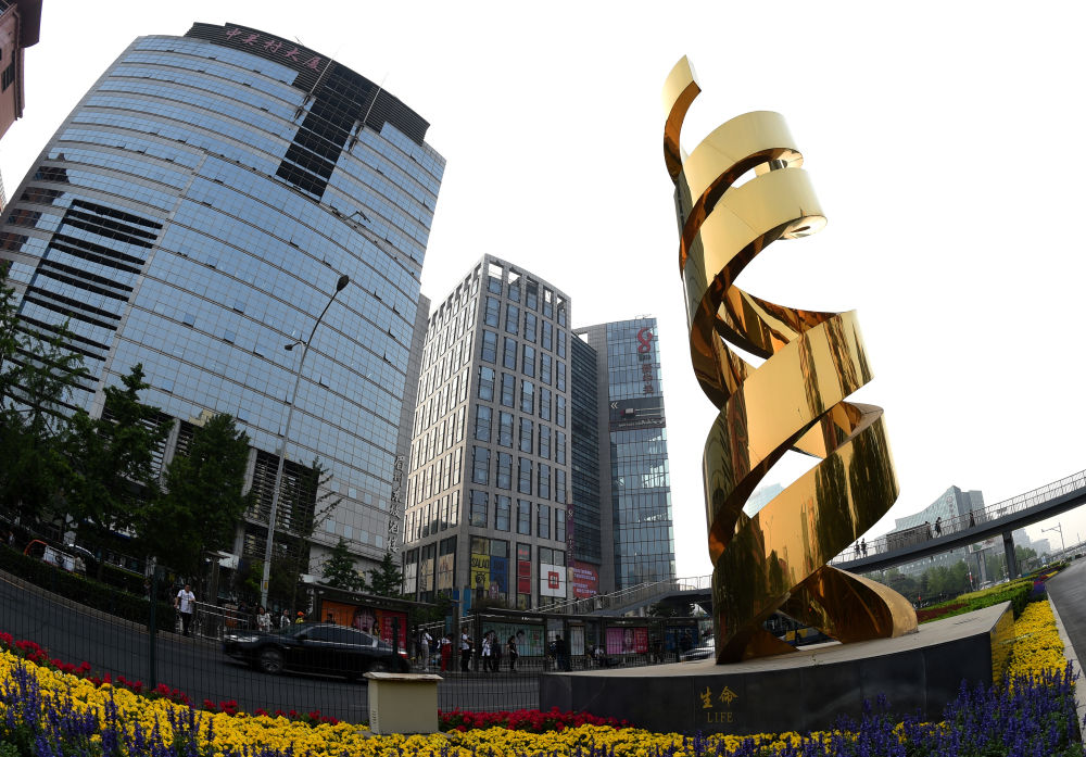 位于中关村大街、题为《生命》的雕塑(2018年5月14日摄)。新华社记者 罗晓光 摄