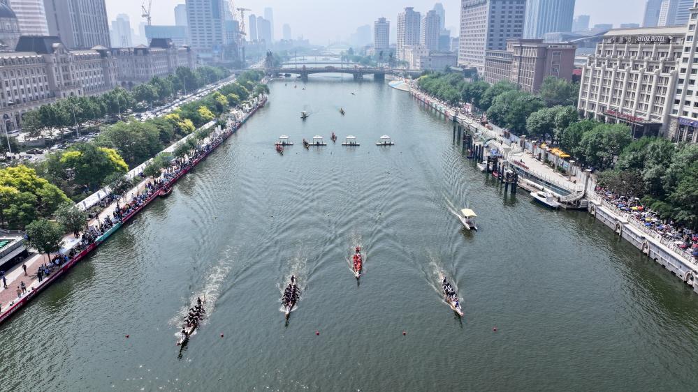 这是6月10日拍摄的2024年海河龙舟赛比赛现场。(无人机照片) 新华社记者 孙凡越 摄