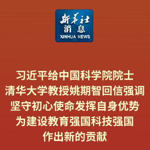 新华社消息|习近平给中国科学院院士、清华大学教授姚期智回信强调 坚守初心使命发挥自身优势 为建设教育强国科技强国作出新的贡献