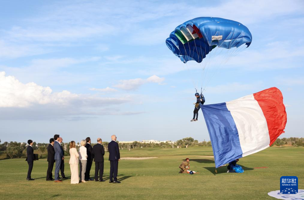 6月13日,在意大利南部普利亚大区法萨诺市,七国集团与会领导人观看高空跳伞表演。新华社记者 李京 摄
