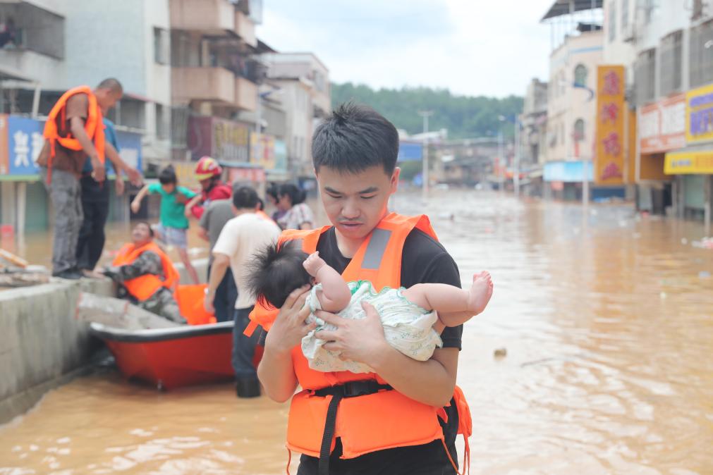 面对滔滔洪水,平远县大柘镇坝头村一名村民做出了“逆行”的决定,关键时刻,该村民主动请缨返回村里,用家里的橡胶船协助救援人员将60多人转移到安全地带。