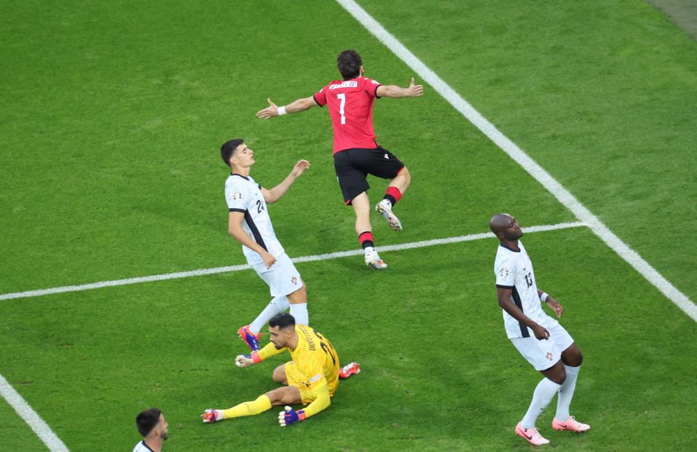 F组葡萄牙队两连胜提前锁定小组第一,最后一轮轮休大部分主力,而格鲁吉亚队则必须胜利才能晋级。比赛开始仅两分钟,格鲁吉亚队取得闪电进球,安东尼奥·席尔瓦回传失误,格鲁吉亚得球发动快速反击,克瓦拉茨赫利亚突入禁区推射破门。