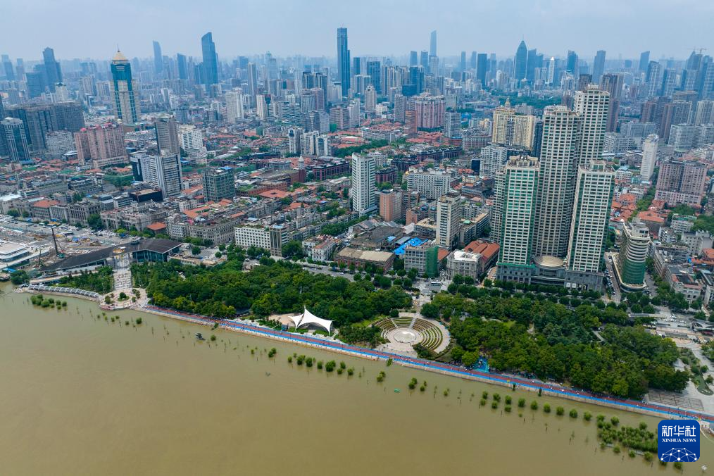 7月2日拍摄的武汉市汉口江滩(无人机照片)。新华社记者 伍志尊 摄