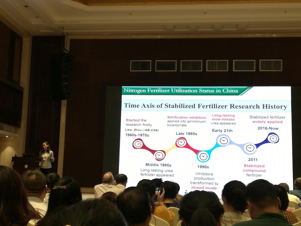 张丽莉在第十七届世界肥料大会上作报告。(照片由受访者提供)