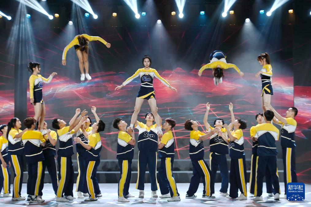 7月3日,福建师范大学体育科学学院SUN技巧啦啦队在表演啦啦操《青春飞扬》。新华社记者 林善传 摄