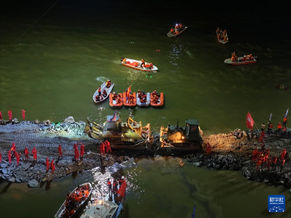 堵口刻不容缓。随着决口内外水位齐平,作业条件逐步成熟,堵口于6日启动。抢险队伍紧急修筑起作业平台,疏通堤上交通,昼夜作战,从决口左右两边双向作业,争分夺秒推进。