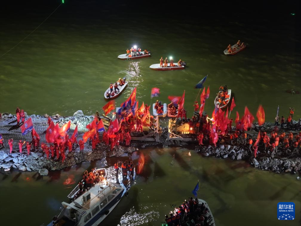 新华社湖南华容7月8日电 8日22时31分,记者在湖南华容县团洲垸洞庭湖大堤决口封堵现场看到,团洲垸洞庭湖大堤决口完成封堵。
