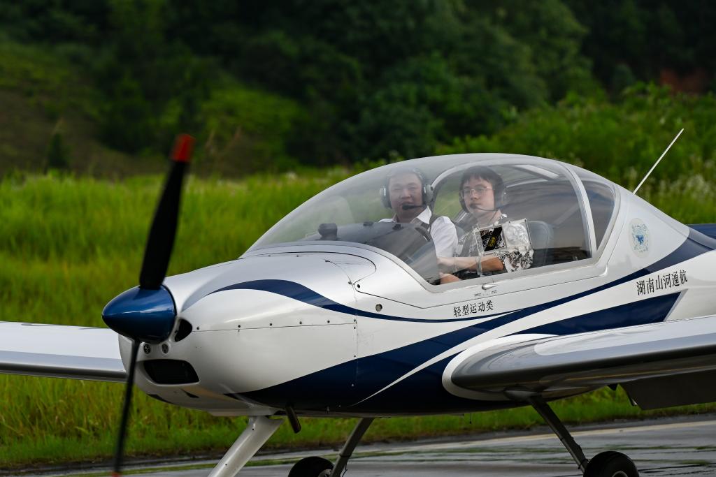 6月13日,在湖南株洲芦淞机场,客户在体验低空飞行。新华社记者 张铖 摄