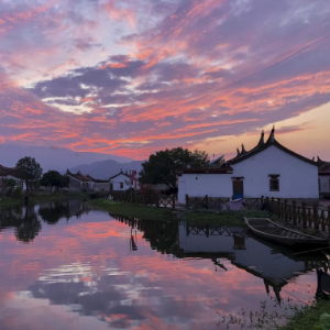这是夕阳下的埭美水上古村景色(资料照片)。