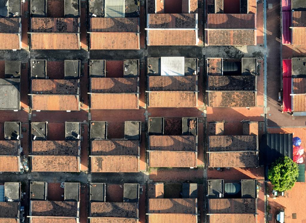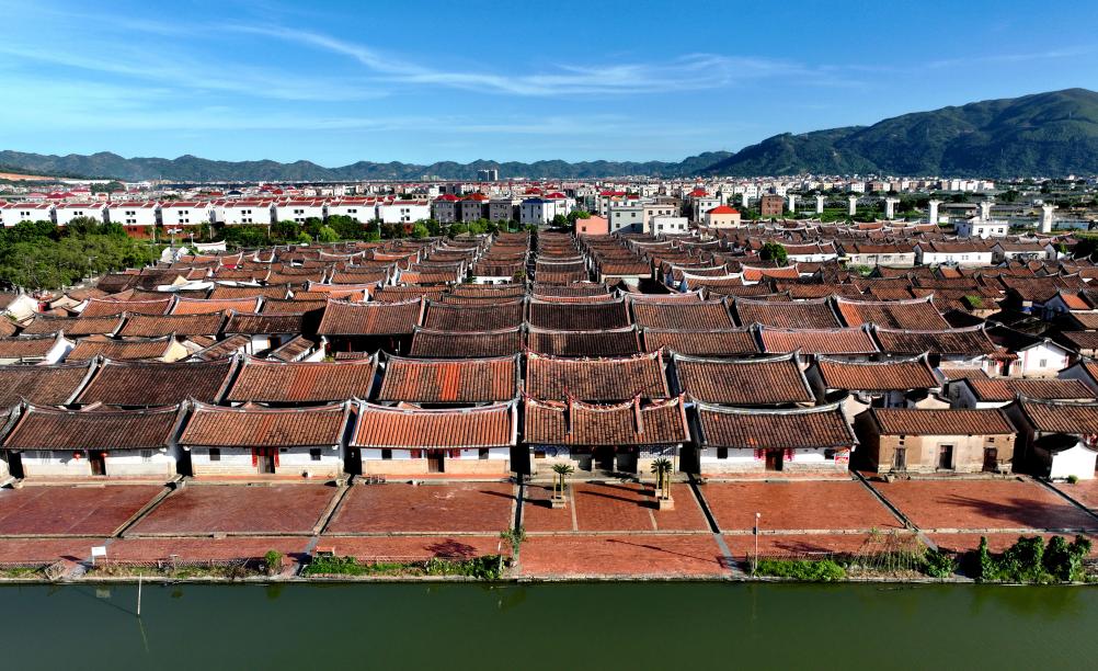 漳州龙海区东园镇埭美村的古厝,横竖对齐、整齐划一(7月10日摄,无人机照片)。