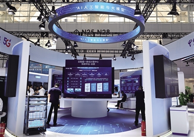 观众在2024世界智能产业博览会中国电信展区参观。记者 赵子硕 摄
