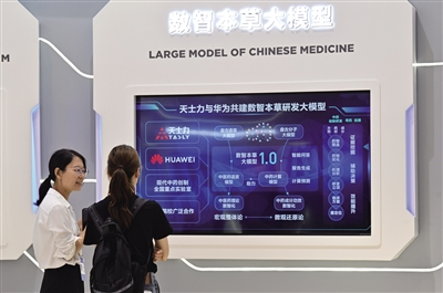 观众在2024世界智能产业博览会上的天士力展区了解数智本草大模型。记者 李然 摄