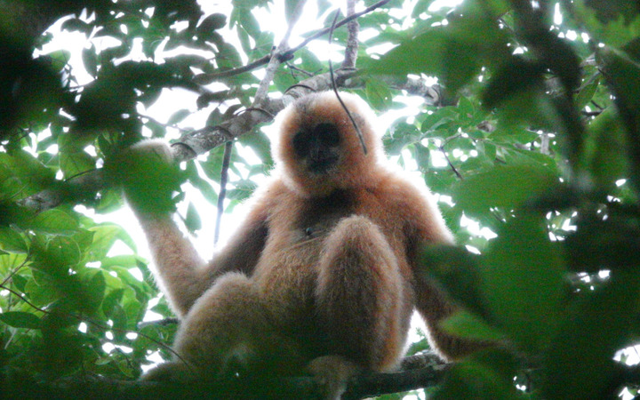 生活在海南热带雨林国家公园霸王岭片区的海南长臂猿。新华社记者 张丽芸 摄