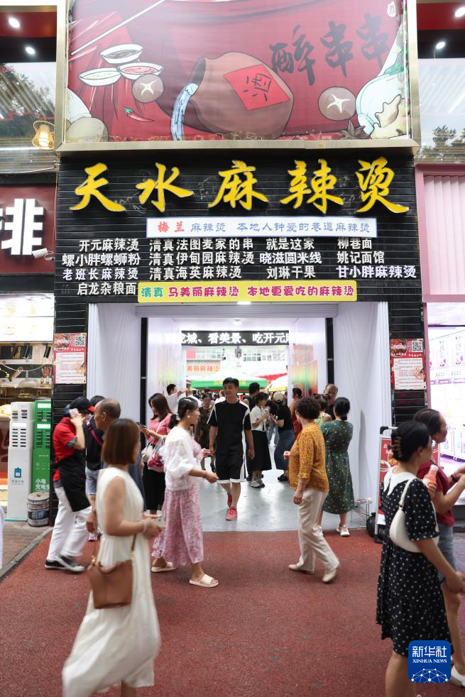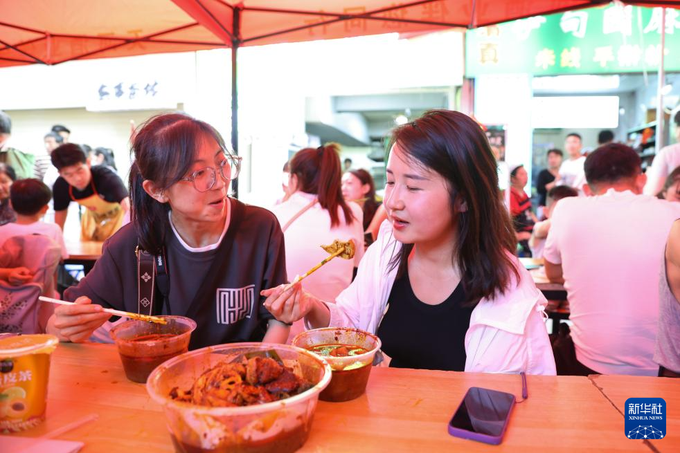 7月22日,顾客在甘肃天水市名优小吃城品尝麻辣烫。 新华社记者 吕帅 摄