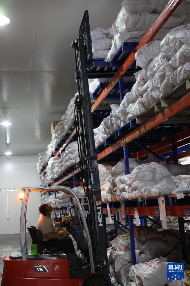 7月23日,工作人员在甘肃陇西县的一家药材公司的库房运输药材。 新华社记者 吕帅 摄