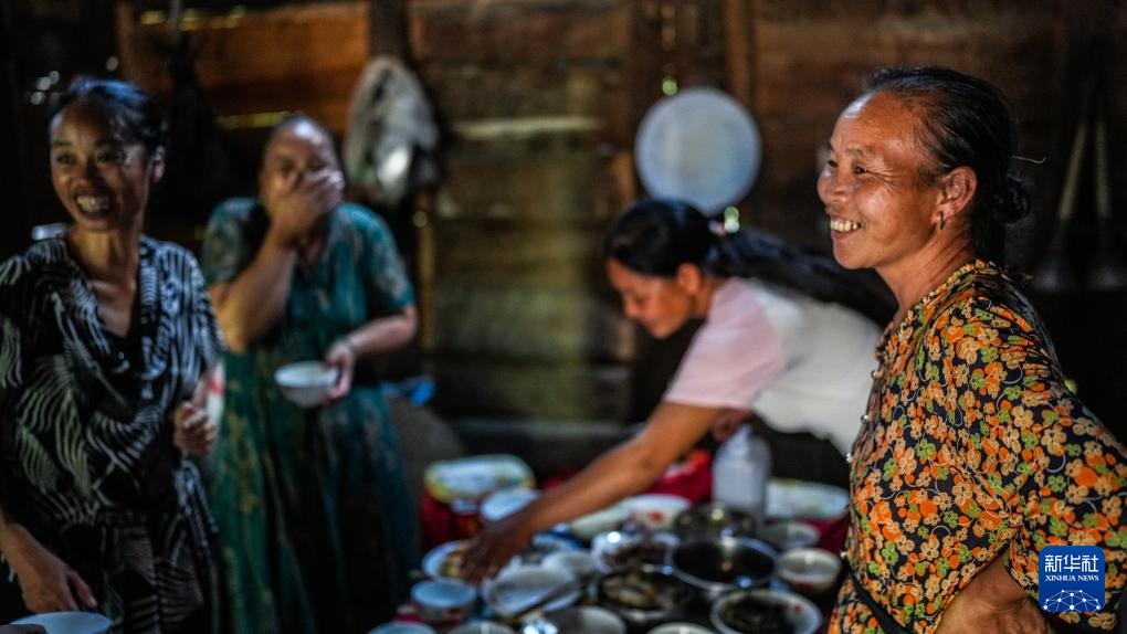 天门村村民在吊脚楼生产生活(7月16日摄)。
