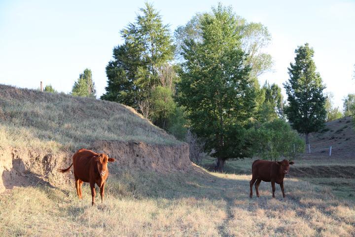 如今的阿鲁柴登速地沟水库已经荒废,两头牛在梯田上吃草。新华每日电讯记者张典标摄