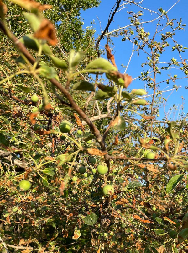 多年后,随着条件改善,村里打上机井,大坝逐渐废弃,坝下无人料理的果树却还年年结果。今年,又有不少绿色小果子挂在枝头。冯玉宽每到夏天都要回来摘一点,带回家晒果干。“这就是一种情结。小时候放暑假,我们孩子就来这吃果子,吃到肚胀……”