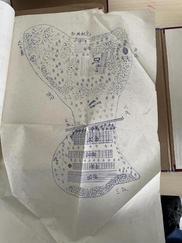 1975年绘制的阿鲁柴登苗圃示意图。新华每日电讯记者张典标摄