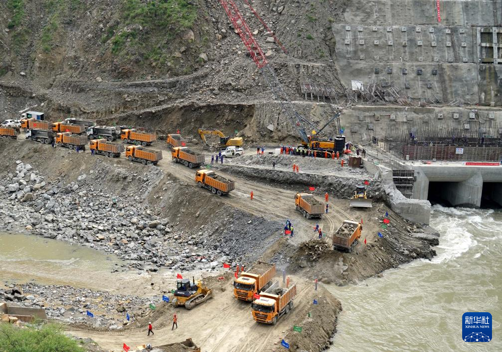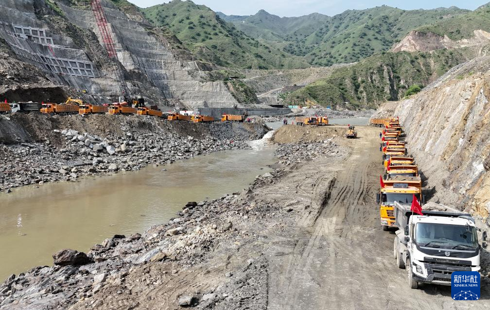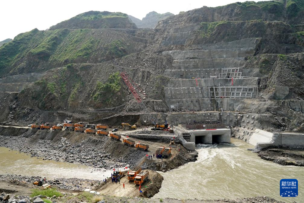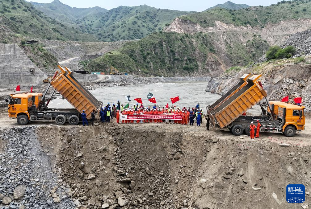 8月16日,在巴基斯坦西北部的斯瓦特地区,中企承建的莫赫曼德水电站项目举行截流仪式。新华社发(中国能建葛洲坝集团供图)