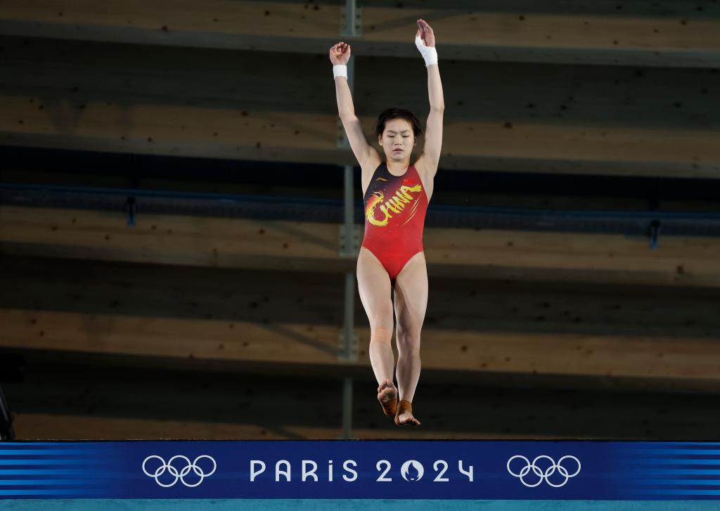 ↑8月5日,中国选手全红婵在巴黎奥运会跳水女子10米台半决赛中。新华社记者 张玉薇 摄