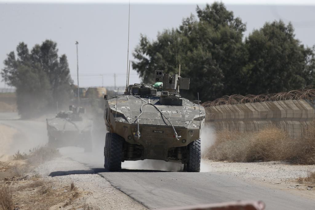 这是5月29日在以色列与加沙边境以方一侧拍摄的以军部队。以色列军方当天发表声明说,以军对“费城走廊”实现“完全作战控制”。新华社发(贾马尔·阿瓦德摄)