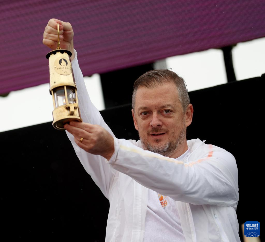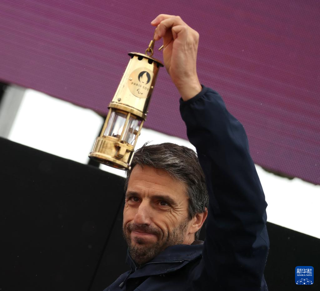 8月24日,巴黎奥组委主席托尼·埃斯坦盖举起火种灯。