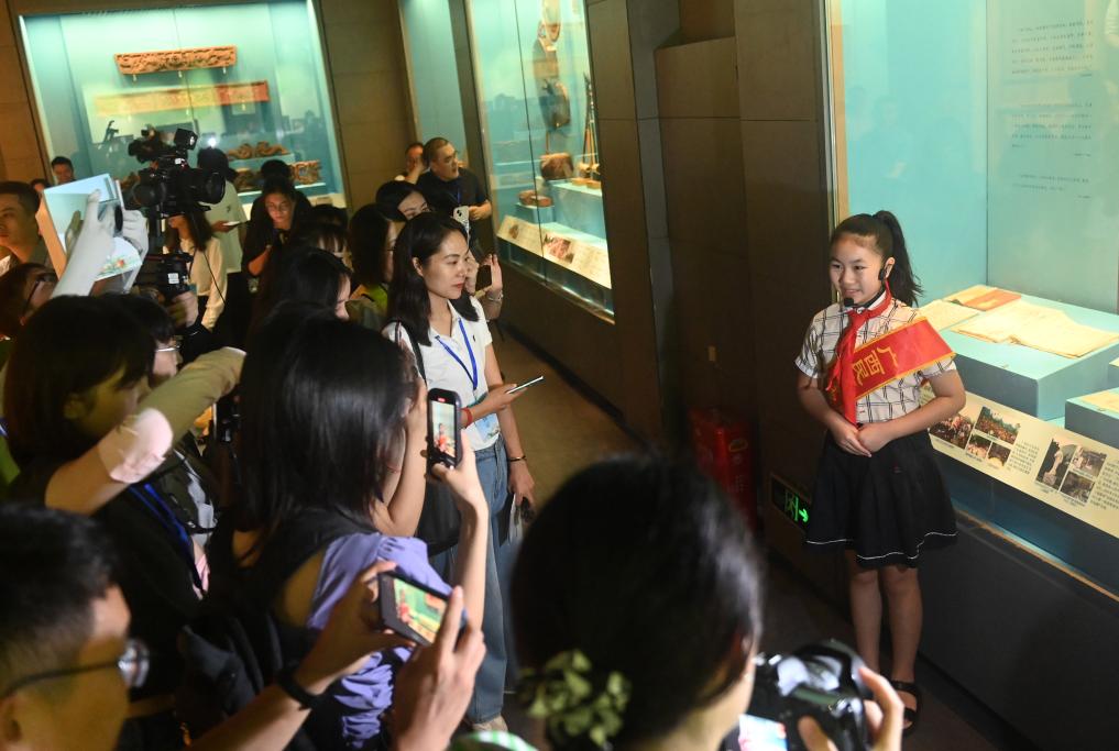 8月24日,11岁的“红领巾”志愿讲解员周思言正为参观者进行讲解。新华社记者 陆波岸 摄