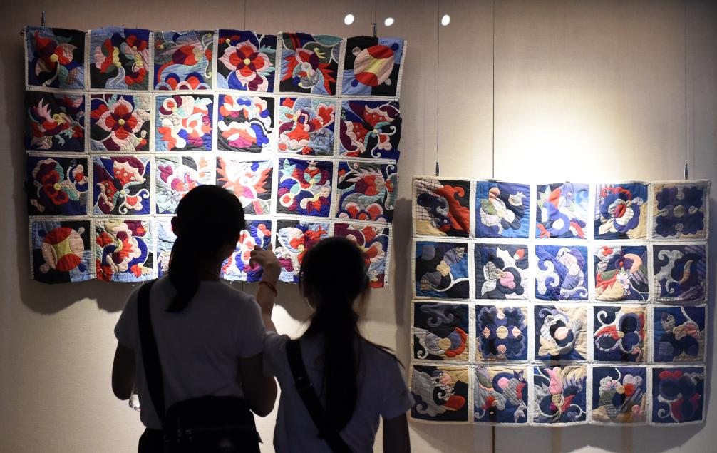 参观者在广西民族博物馆欣赏壮族百衲作品。新华社记者 陆波岸 摄
