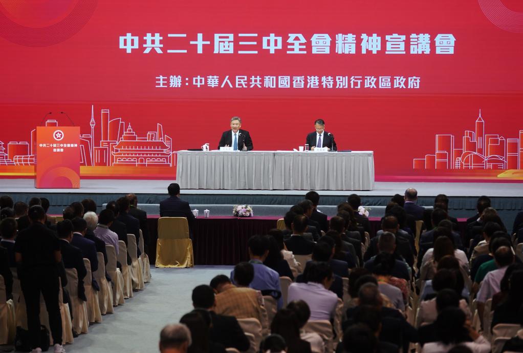 8月26日,学习贯彻党的二十届三中全会精神中央宣讲团在香港特别行政区为香港特区管治团队宣讲。新华社记者 王申 摄