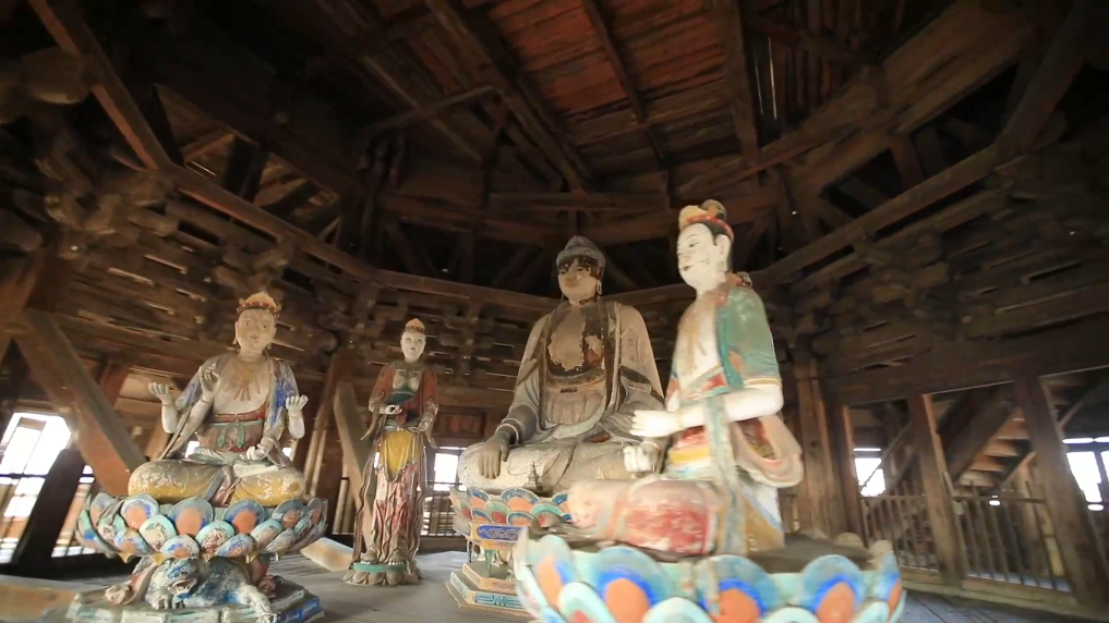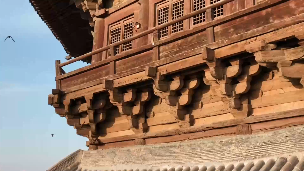 应县木塔塔身呈八角形,外观五层六檐,实为明五暗四九层塔。全塔上下有50余种斗拱装点其中,木构件互相卯榫咬合,历经近千年风雨仍巍然屹立。