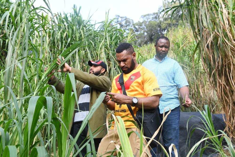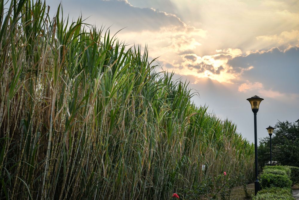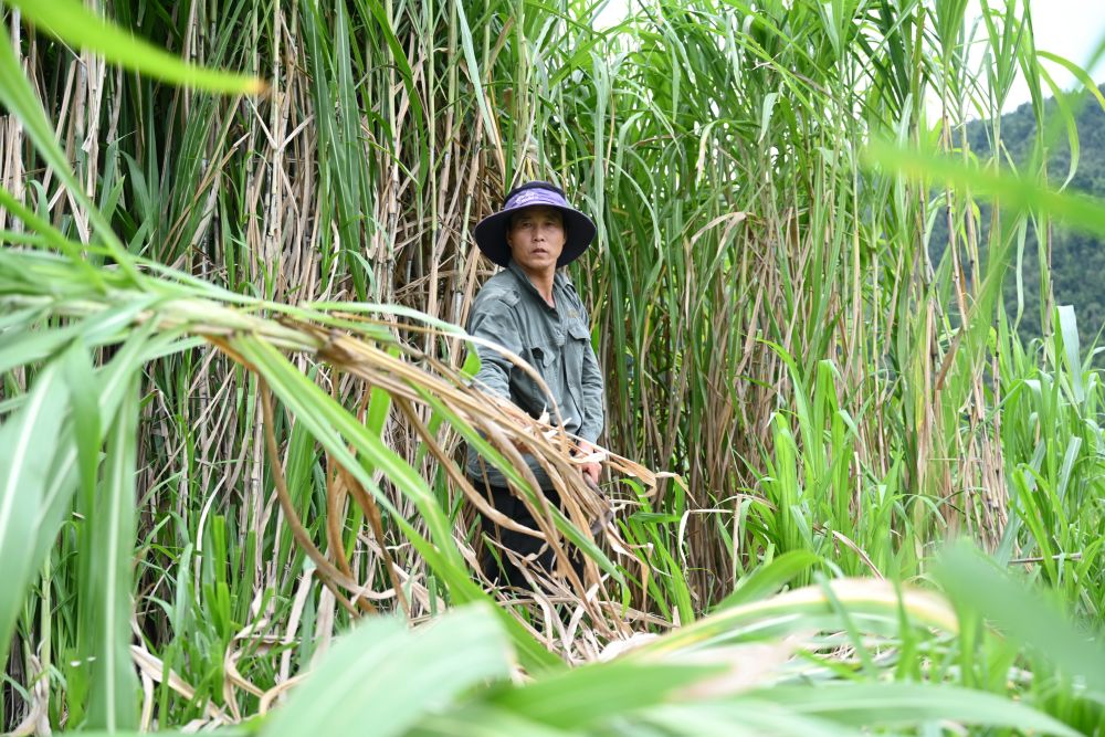 ↑卢旺达留学生欧贝德·尼伊姆巴巴兹在位于福州的福建农林大学观察巨菌草的生长情况。