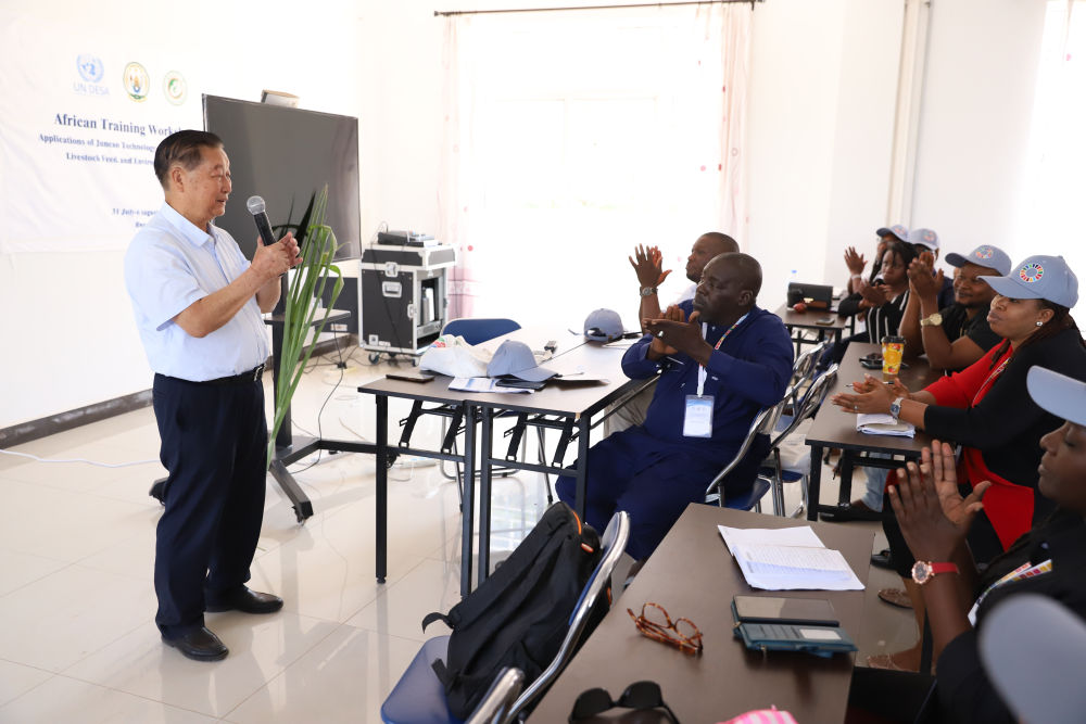 8月,在卢旺达南方省胡耶区的中国援卢农业技术示范中心,一场有关菌草技术的培训正在这里举行。林占熺,这位年逾八旬的中国菌草技术发明人正悉心为培训班学员讲解菌草技术。