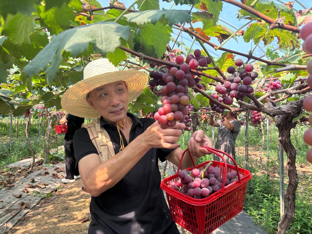这是果农在葡萄园内采摘葡萄。新华社记者刘佳敏 摄