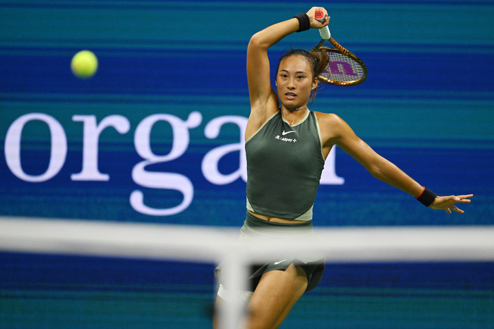9月1日,郑钦文在比赛中。新华社记者 李睿 摄