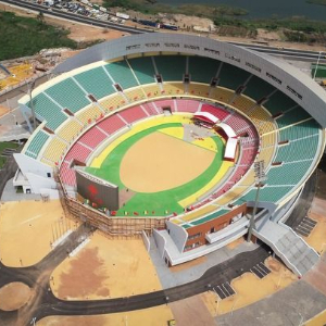 这是2018年7月18日在塞内加尔首都达喀尔航拍的中国援建的塞内加尔竞技摔跤场。新华社记者 吕帅 摄