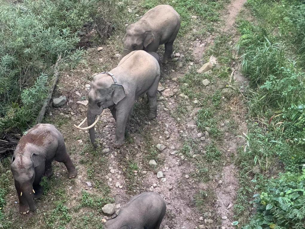 西双版纳州亚洲象保护管理中心主任王斌介绍,9月5日下午,来自“大噜胞家族”和“小缺耳家族”的34头野象,陆续从雨林深处来到野象谷三岔河附近活动。傍晚,监测员惊喜地发现象群中出现了戴着项圈的阿宝。“它和其他野象一起饮水、洗澡,到硝塘补充盐分,晚上和象群一起返回了西双版纳国家级自然保护区雨林深处。”王斌说。